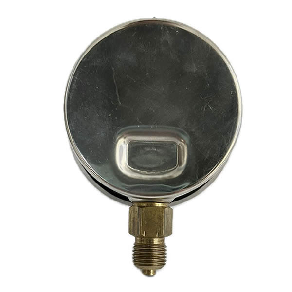O manômetro mecânico com tubo Bourdon modelo 113.53.100 preenchido com líquido é construído com uma caixa de aço inoxidável e peças molhadas de liga de cobre.