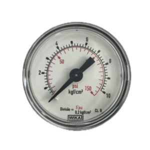 Manômetro 40mm, ligação horizontal, escala dupla 150 psi x 10 kgf / cm², caixa abs, internos em liga de cobre, classe de exatidão B, conexão 1/8 npt, Wika.