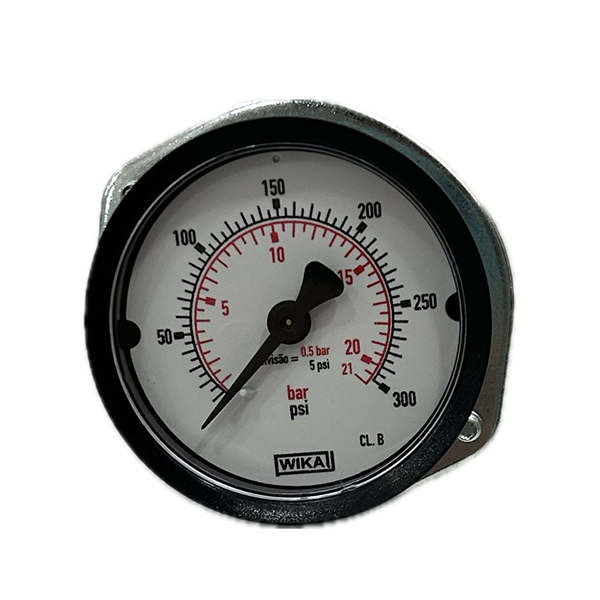 Manômetro 50mm, Ligação horizontal (concêntrica), escala dupla 300 psi x 21 bar G1/8B garra de montagem, aço galvanizado