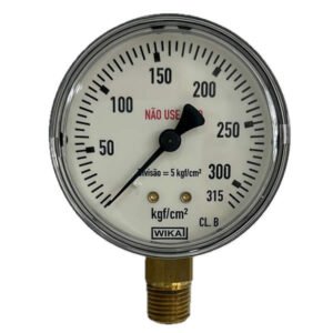 Manômetro 63mm, ligação vertical, 0 – 315 kgf / cm², caixa abs, internos em liga de cobre, classe de exatidão B, conexão 1/4 npt, Wika.