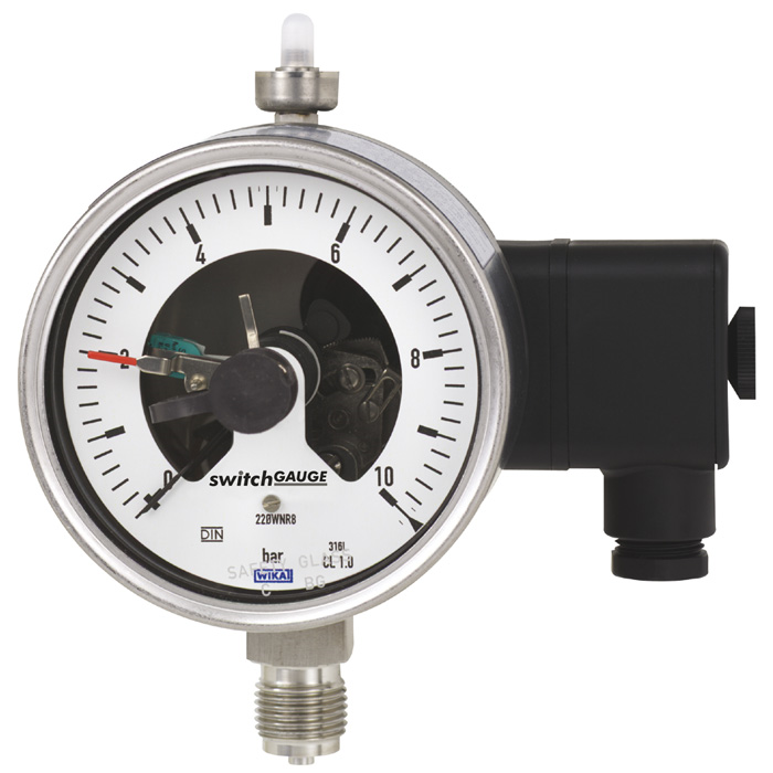 Quando a pressão de processo tem que ser indicada localmente e, ao mesmo tempo, necessita uma conexão com contatos, o manômetro switchGAUGE modelo PGS23.1×0 pode ser utilizado.